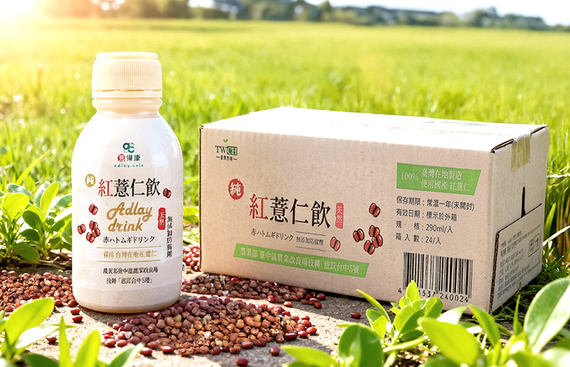 以永續農業與低碳製程守護土地,讓每一瓶紅薏仁飲都承載自然與誠意的溫度。